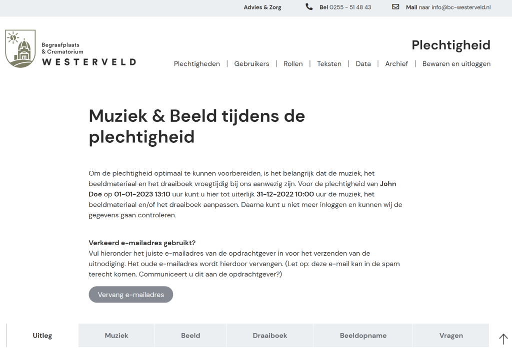 Realisatie Plechtigheidsmodule voor begraafplaatsen en crematoria. Nabestaanden krijgen toegang tot een beveiligde portaal waarbinnen de media zoals muziek en beeld voor de uitvaart kan worden samengesteld.