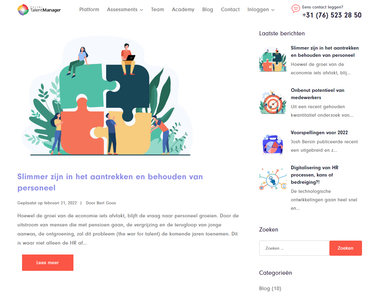 Ontwerp en implementatie website in WordPress OTM biedt het meest brede data-gedreven HR-Tech Platform dat mens en organisatie ondersteunt in het ontdekken, ontwikkelen, verzorgen van 360 graden feedback en mobiliseren van talent.