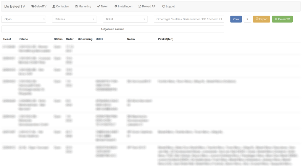 Realisatie CRM applicatie voor het registreren en beheren van de BeleefTV’s, de software licenties, de relaties en een API koppeling met SnelStart voor de facturatie.