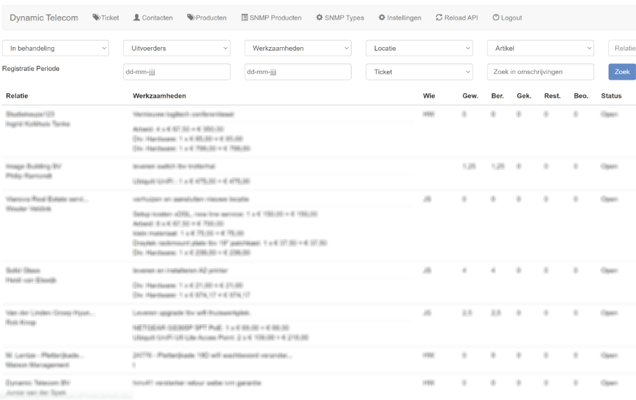 Realisatie CRM applicatie voor het registreren van Tickets, beheren relaties en versturen van facturen middels een API koppeling met SnelStart.